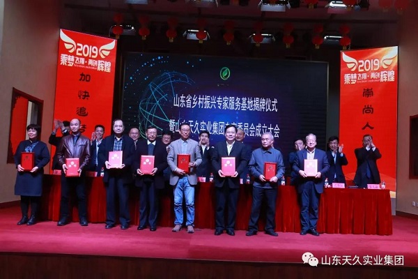 阳春四月、牡丹之都,春风和煦、梧桐盛开。山东省乡村振兴专家服务基地揭牌仪式暨山东天久实业集团公司专家委员会成立大会,4月14日在开发区陈集镇天久集团礼堂隆重举行 。